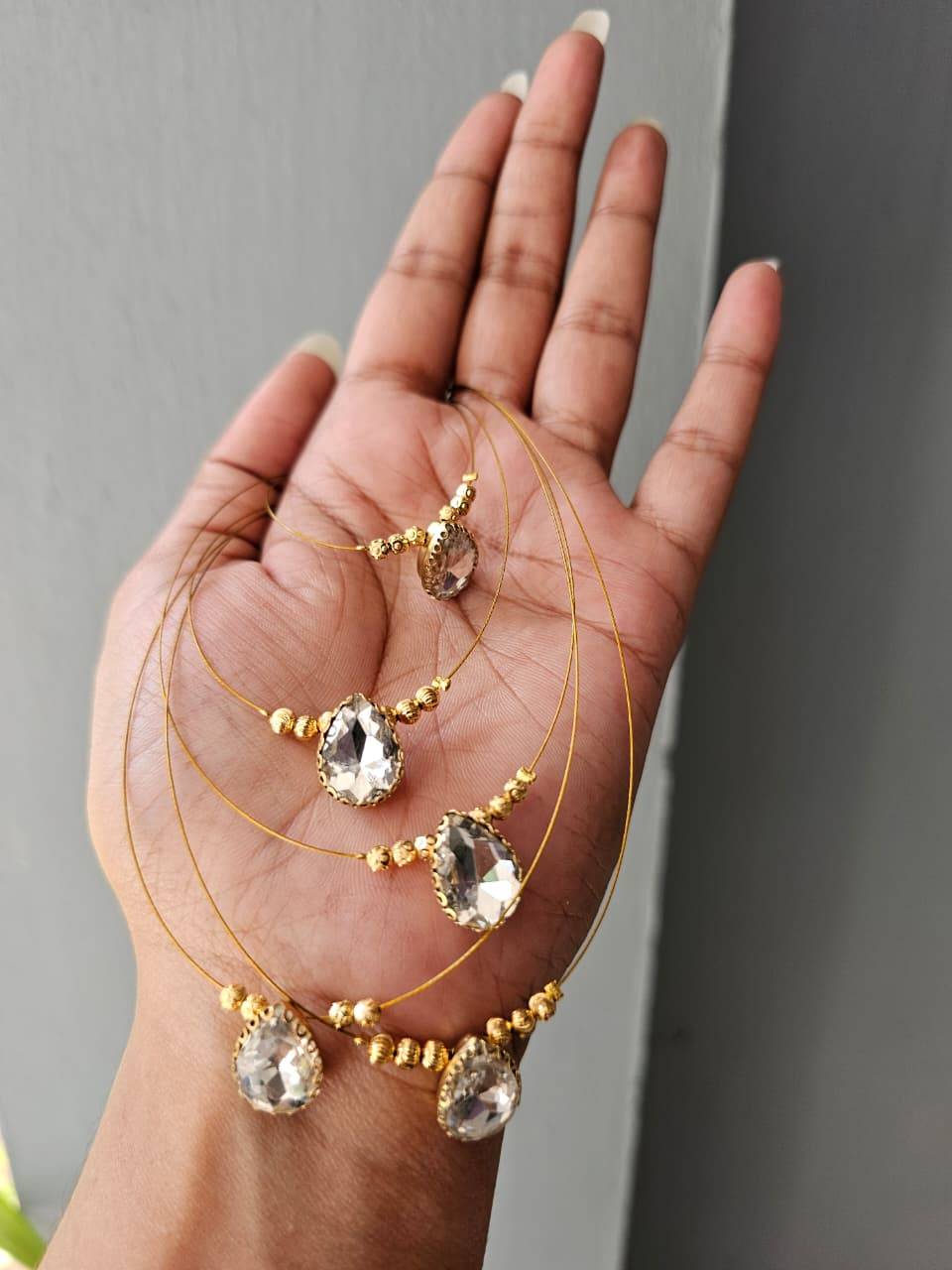 White stone pendent invisible necklace
